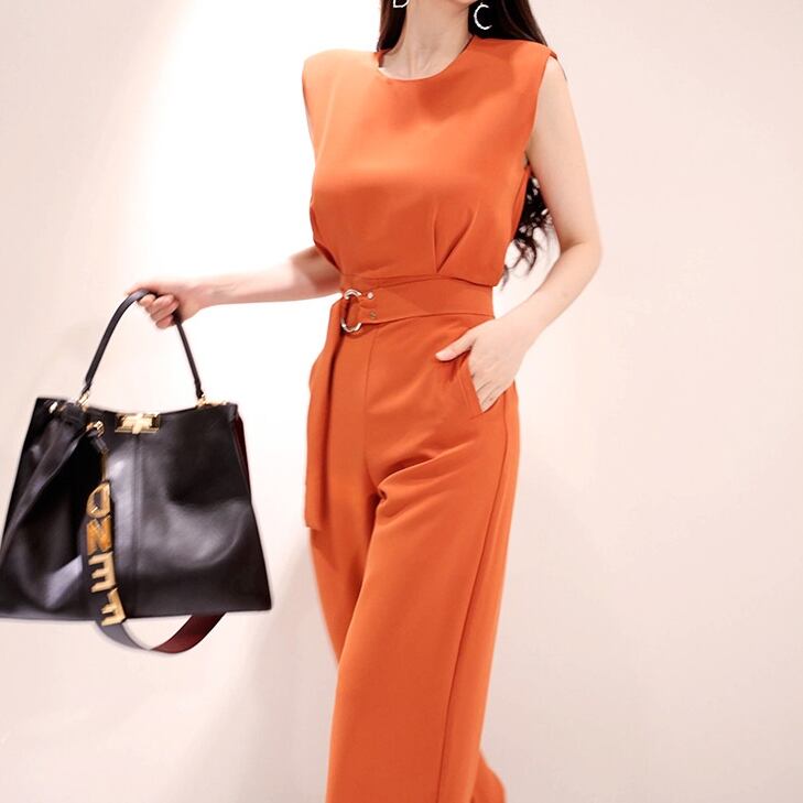 オールインワン レディース 春夏 秋冬 春 夏 秋 冬 パンツドレス パンツ ノースリーブ オールインワンパンツドレス ロング シンプル ワイドパンツ OL オフィスカジュアル 結婚式 パーティー お呼ばれ ネイビー オレンジ ブラック 10代 20代 30代 40代 C-WAW1024