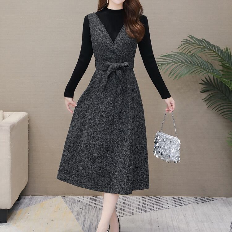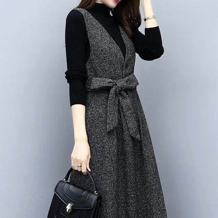 セットアップ レディース 春夏 秋冬 春 夏 秋 冬 ワンピース ジャンパースカート ニットトップス 長袖 黒 トップス ノースリーブワンピース ひざ丈 ミディアムワンピース ロング ミモレ丈 ワンピース シンプル ひざ丈ワンピ 2ピース セット カジュアルワンピ グレー ブラック 体型カバー 大人 カジュアル 10代 20代 30代 40代 C-WAW1042