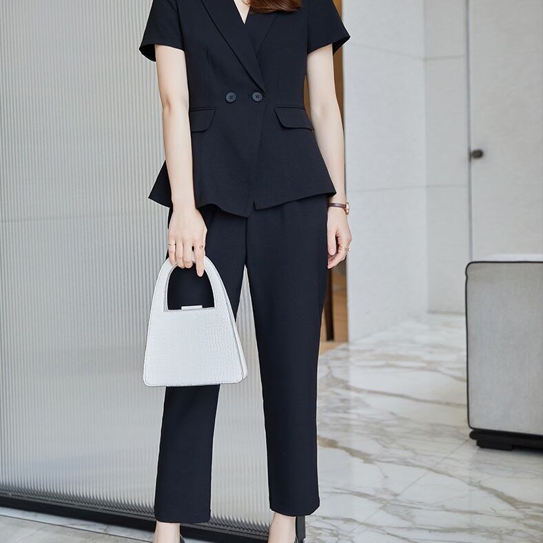 商品名:シンプル 半袖ジャケット&パンツ パンツスーツ セットアップ