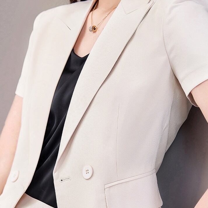 商品名:シンプル 半袖ジャケット&スカート スカートスーツ セットアップ