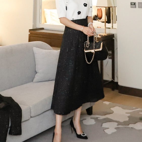気品あるツイード素材が高見えして華やか。