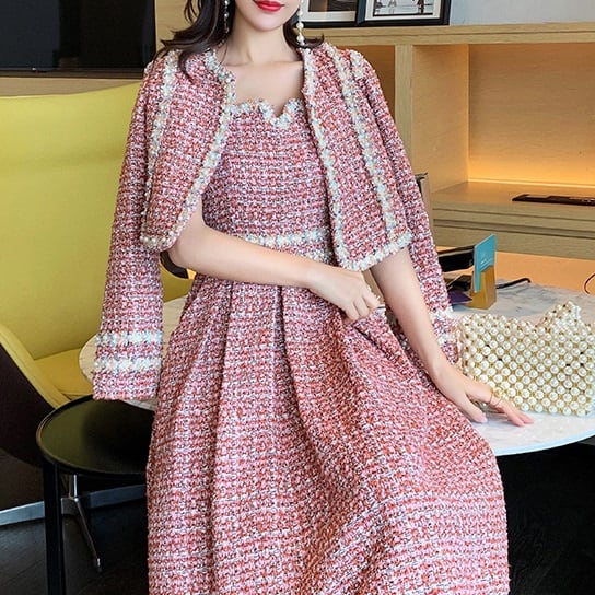 ジャケットとワンピースのセットアップ。